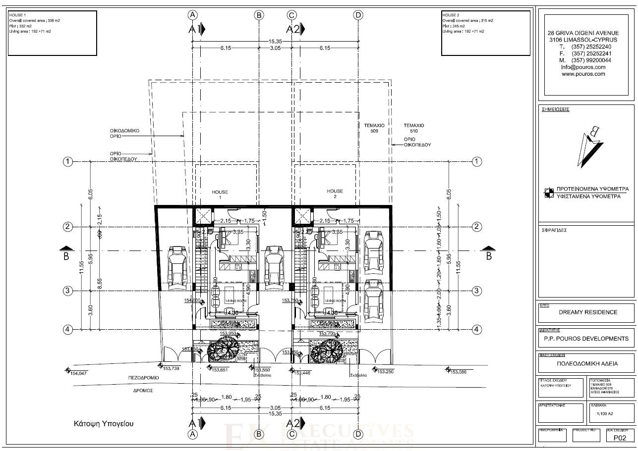 HOUSE 3: 4 Bedroom Detached Covered Area 338m² – Plot size 330m² – Living Area 263m² (incl.71m² G.F with 1–2 Bed) POOL – €990.000