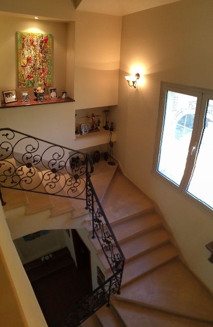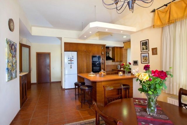 A stylish staircase with natural stone steps lead to the first floor with four spacious bedrooms full suites and sea-view balconies.All living areas on both floors are facing southwith big openings overlooking the garden areawith the pool, the Annex House and the gulf coast of the city. Build in 2001,earthquake-resistant reinforced concrete structure, thermal insulated external walls with plastered and painted hollow bricks, dressed by natural local lime stone in Italian architectural motives externally , Italian brand name ceramic floors and sanitary,cabinets and doors in wood.